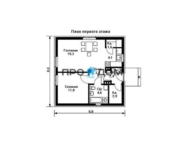 Каркасный одноэтажный дом ПО-04 – прекрасный объект для круглогодичного проживания. Снеговая/ветровая нагрузка уровня 1 этаж делает постройку надёжной в любую погоду. Площадь дома составляет 64 м2, что позволит разместить всю необходимую мебель и предметы интерьера. Размеры дома 8х8 экономят место на участке, чтобы вы могли освоить свободное пространство по своему вкусу.