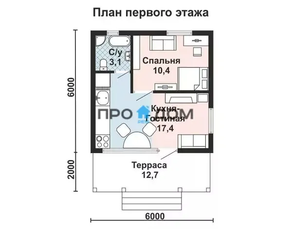 Каркасный одноэтажный дом ПО-2 – прекрасный объект для круглогодичного проживания. Снеговая/ветровая нагрузка уровня 1 этаж делает постройку надёжной в любую погоду. Площадь дома составляет 48 м2, что позволит разместить всю необходимую мебель и предметы интерьера. Размеры дома 8х6 экономят место на участке, чтобы вы могли освоить свободное пространство по своему вкусу.