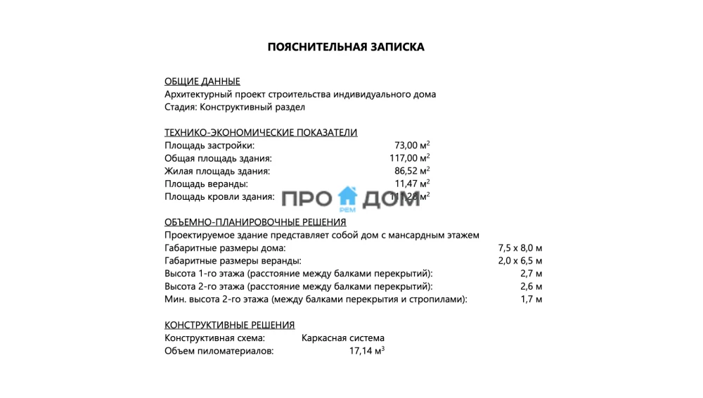 Каркасный дом с мансардой ПМ-613 – прекрасный объект для круглогодичного проживания. Снеговая/ветровая нагрузка уровня делает постройку надёжной в любую погоду. Площадь дома составляет 133 м², что позволит разместить всю необходимую мебель и предметы интерьера. Размеры дома 8 x 7.5 м экономят место на участке, чтобы вы могли освоить свободное пространство по своему вкусу.