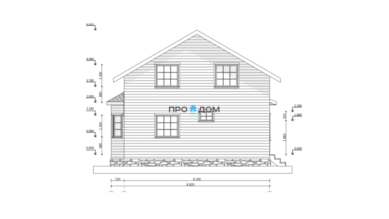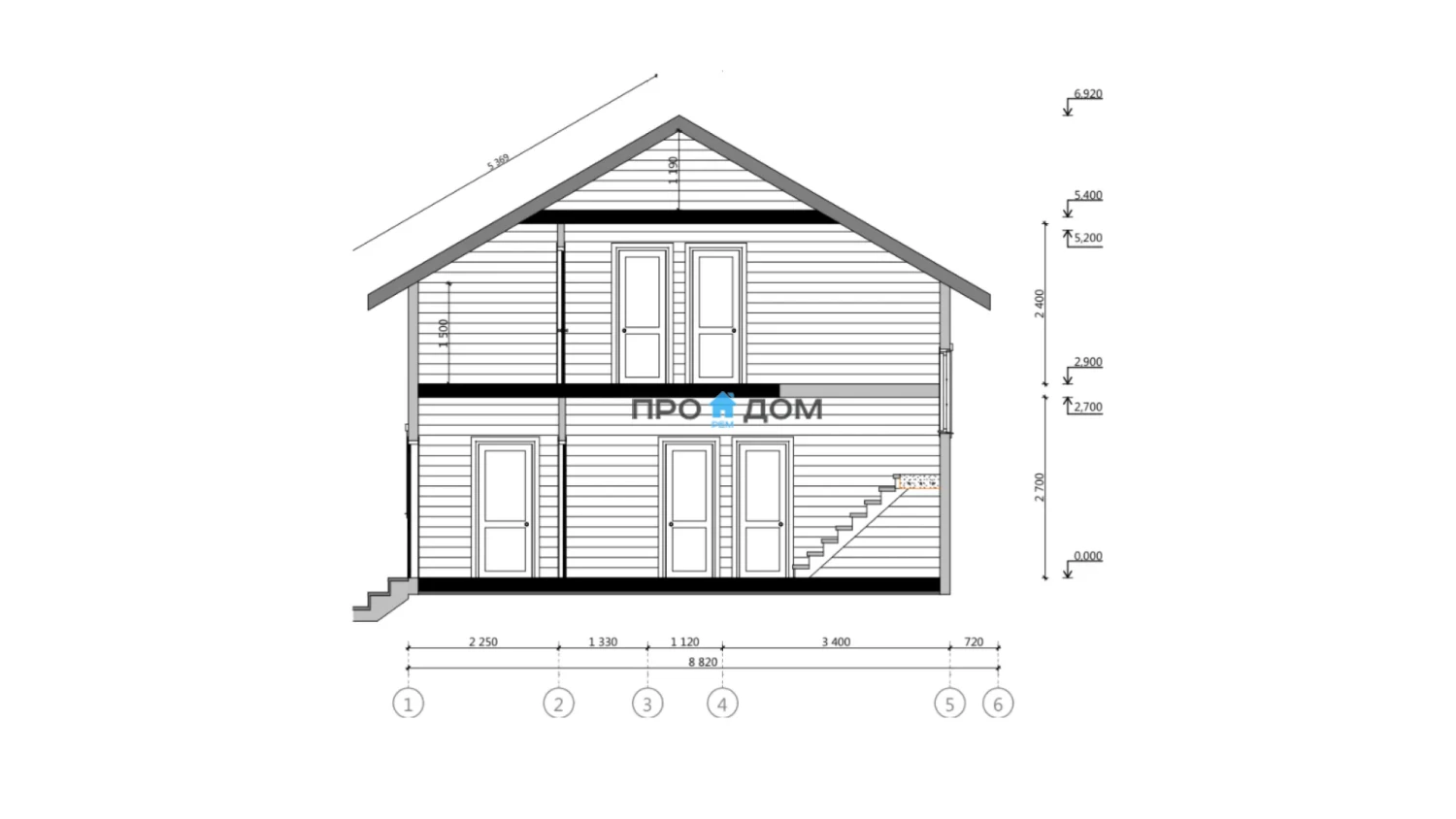 Сечение стоек наружных стен каркаса