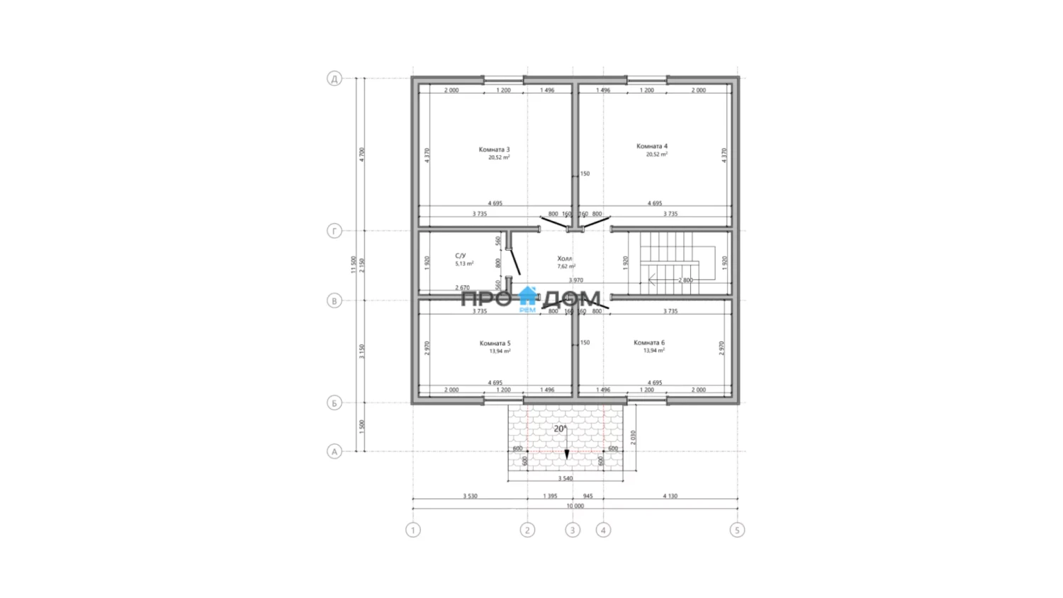 | Кровля | стропильная система с гидроизоляционной мембраной, контробрешеткой и обрешеткой, с монтажом кровельного покрытия по выбранному типу. |