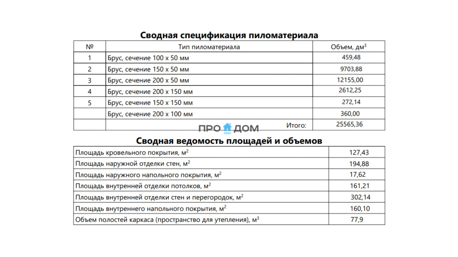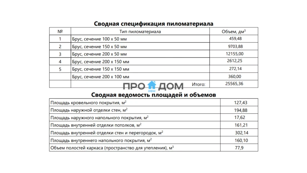 Объем пиломатериала для силового каркаса