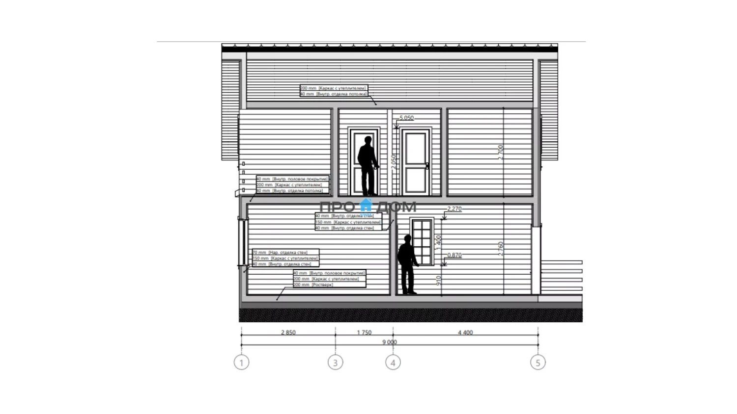 Сечение стоек наружных стен каркаса