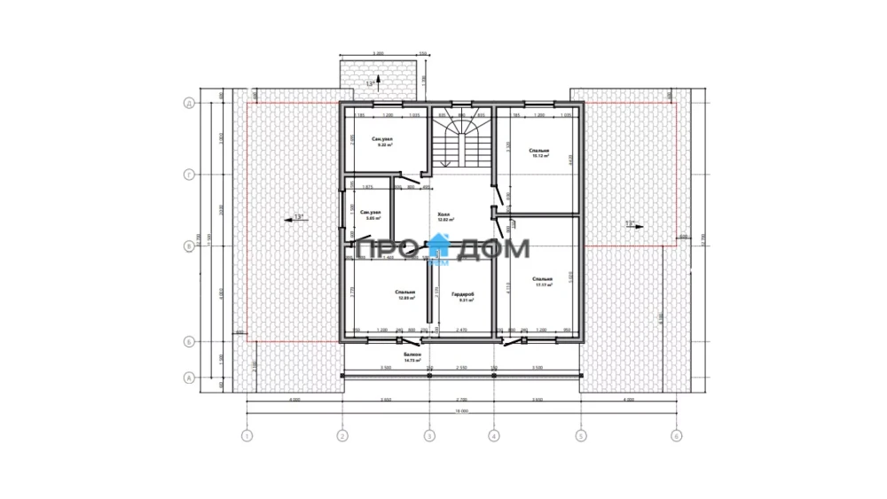 Сечение стоек наружных стен каркаса