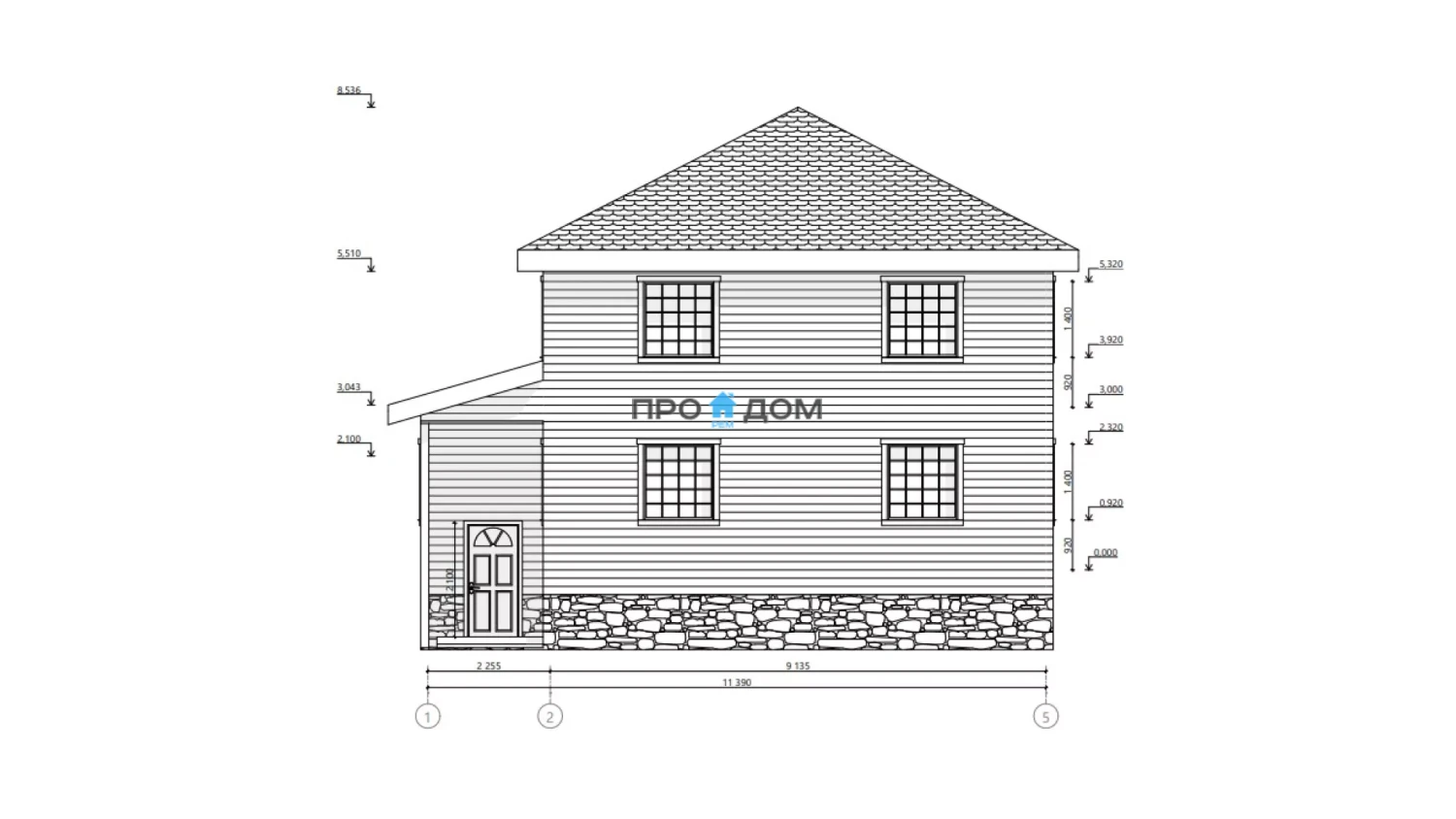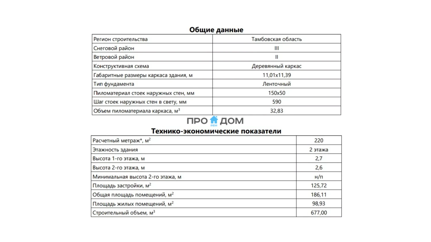 Каркасный двухэтажный дом ПД-257 – прекрасный объект для круглогодичного проживания. Снеговая/ветровая нагрузка уровня 2 этажа делает постройку надёжной в любую погоду. Площадь дома составляет 220 м², что позволит разместить всю необходимую мебель и предметы интерьера. Размеры дома 11.39 x 11.01 м экономят место на участке, чтобы вы могли освоить свободное пространство по своему вкусу.