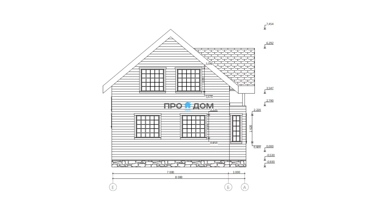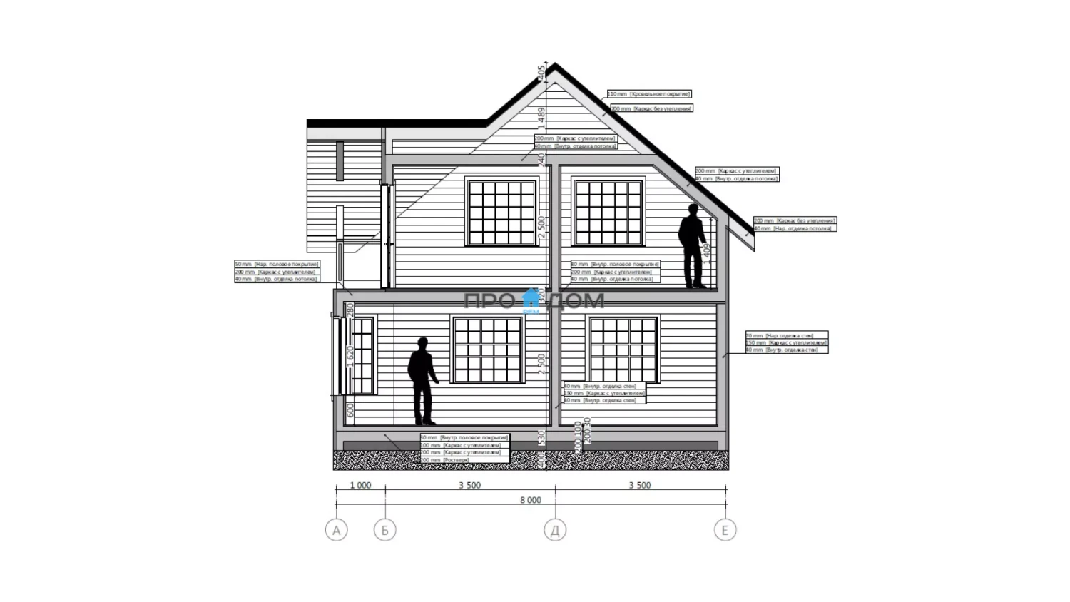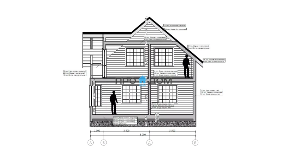 Сечение стоек наружных стен каркаса