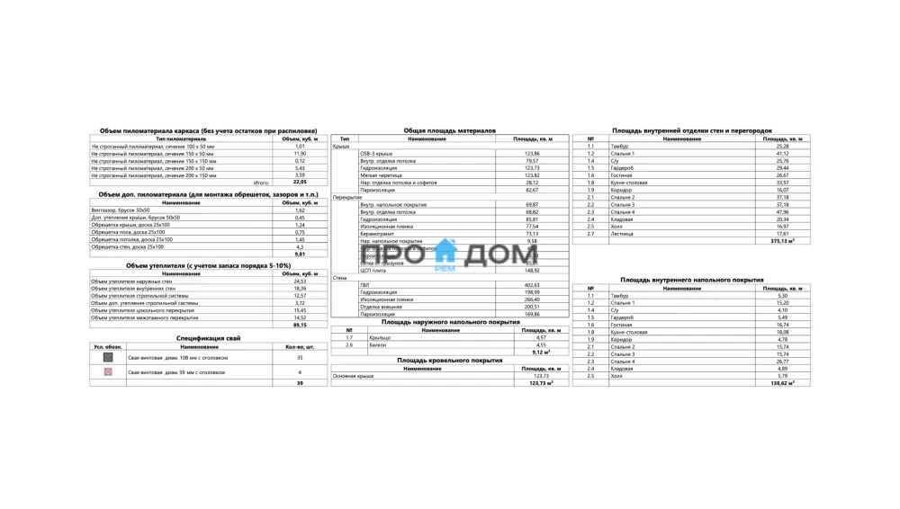 Объем пиломатериала для силового каркаса