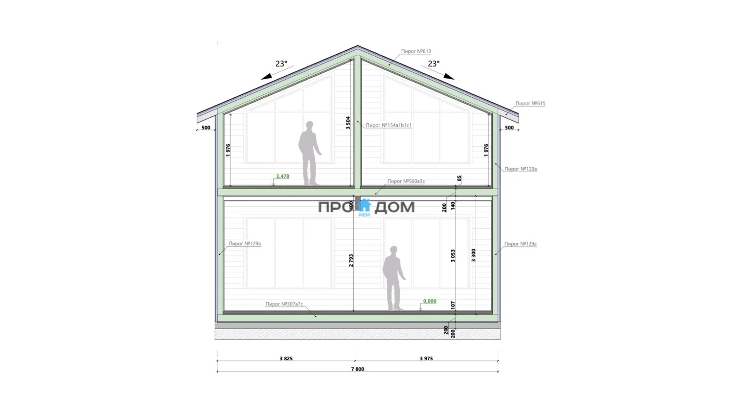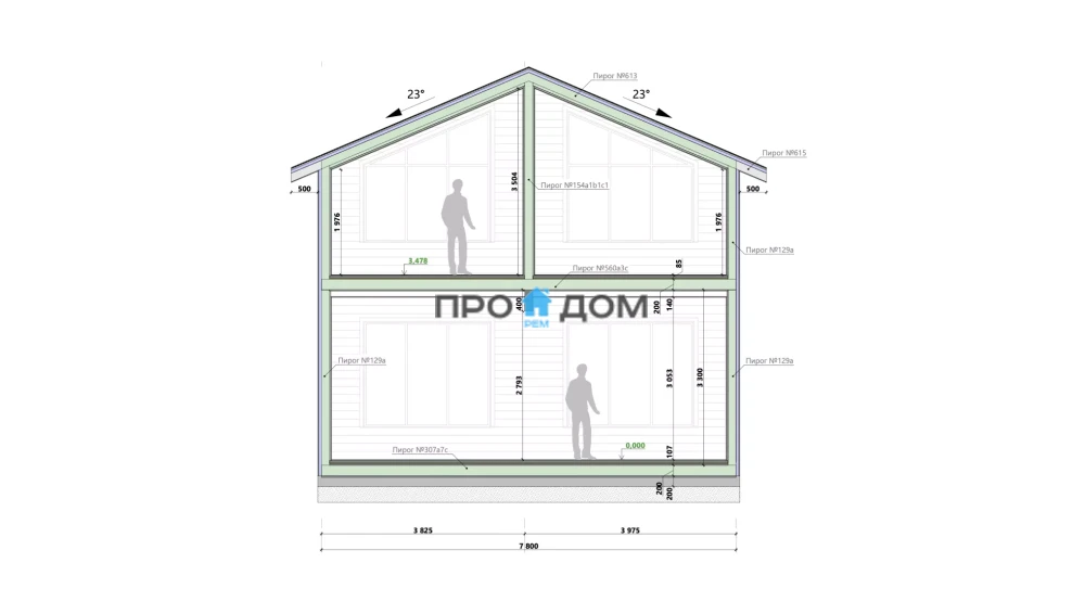 Сечение стоек наружных стен каркаса