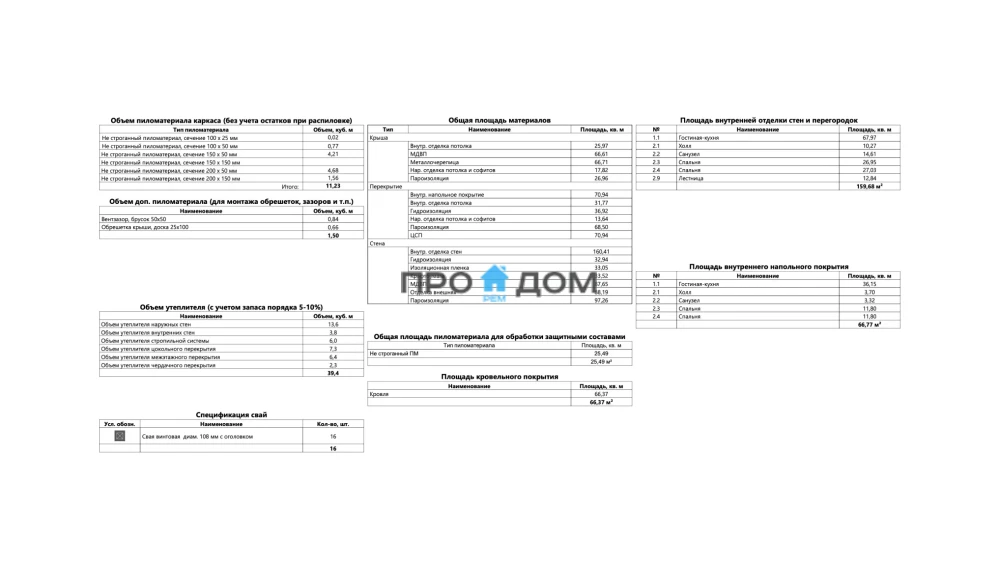 Объем пиломатериала для силового каркаса