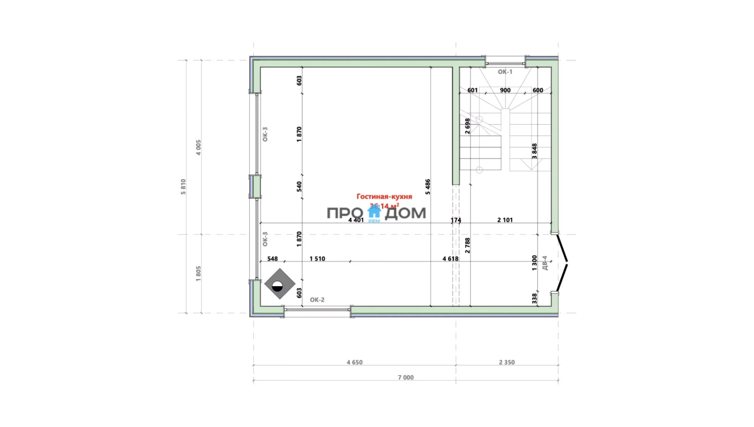 Каркасный дом с мансардой ПМ-99 – прекрасный объект для круглогодичного проживания. Снеговая/ветровая нагрузка уровня делает постройку надёжной в любую погоду. Площадь дома составляет 81 м², что позволит разместить всю необходимую мебель и предметы интерьера. Размеры дома 7.0 x 5.8 м экономят место на участке, чтобы вы могли освоить свободное пространство по своему вкусу.