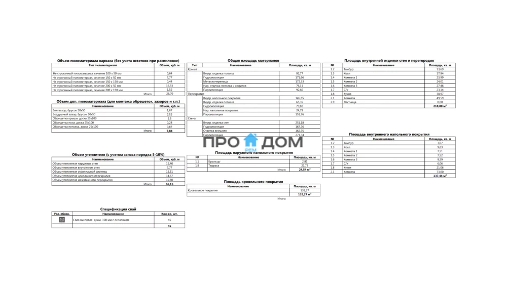 Объем пиломатериала для силового каркаса