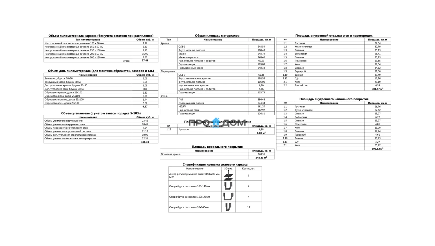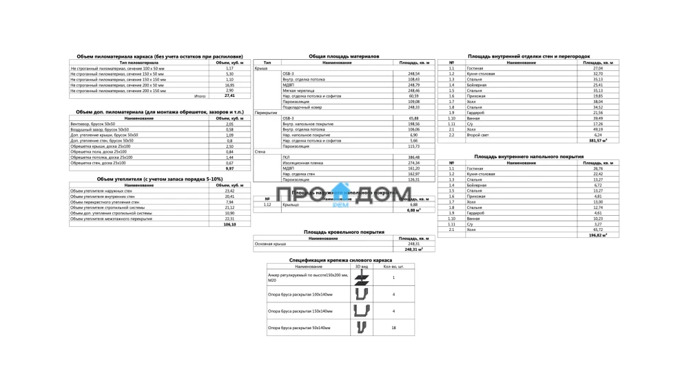 Объем пиломатериала для силового каркаса
