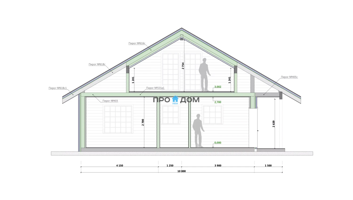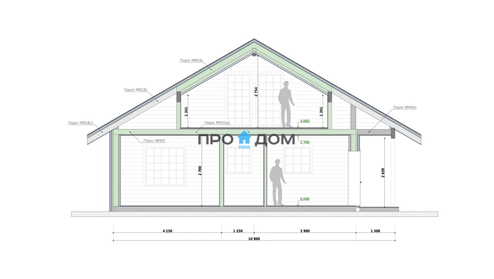 Сечение стоек наружных стен каркаса