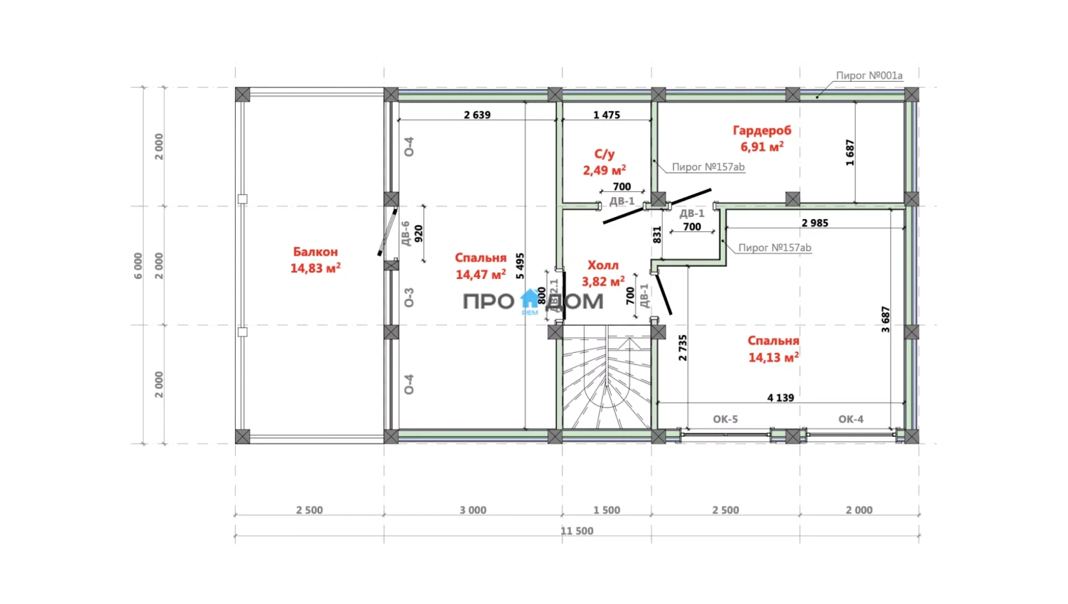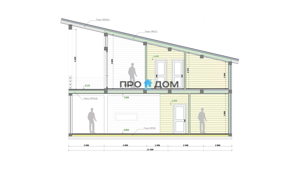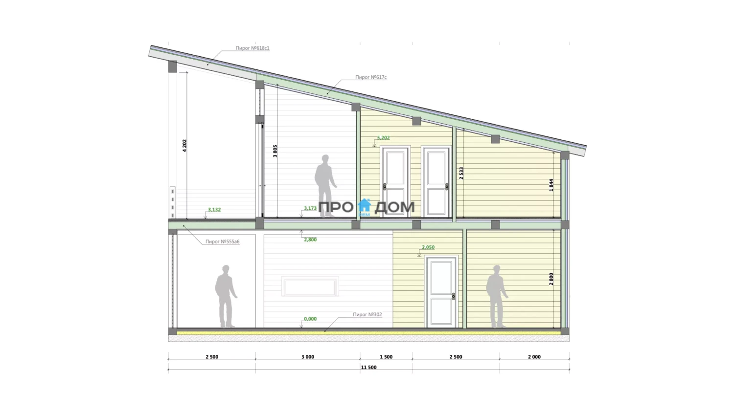 Каркасный двухэтажный дом ПД-146 – прекрасный объект для круглогодичного проживания. Снеговая/ветровая нагрузка уровня 2 этажа делает постройку надёжной в любую погоду. Площадь дома составляет 138 м², что позволит разместить всю необходимую мебель и предметы интерьера. Размеры дома 11.5 x 6.0 м экономят место на участке, чтобы вы могли освоить свободное пространство по своему вкусу.