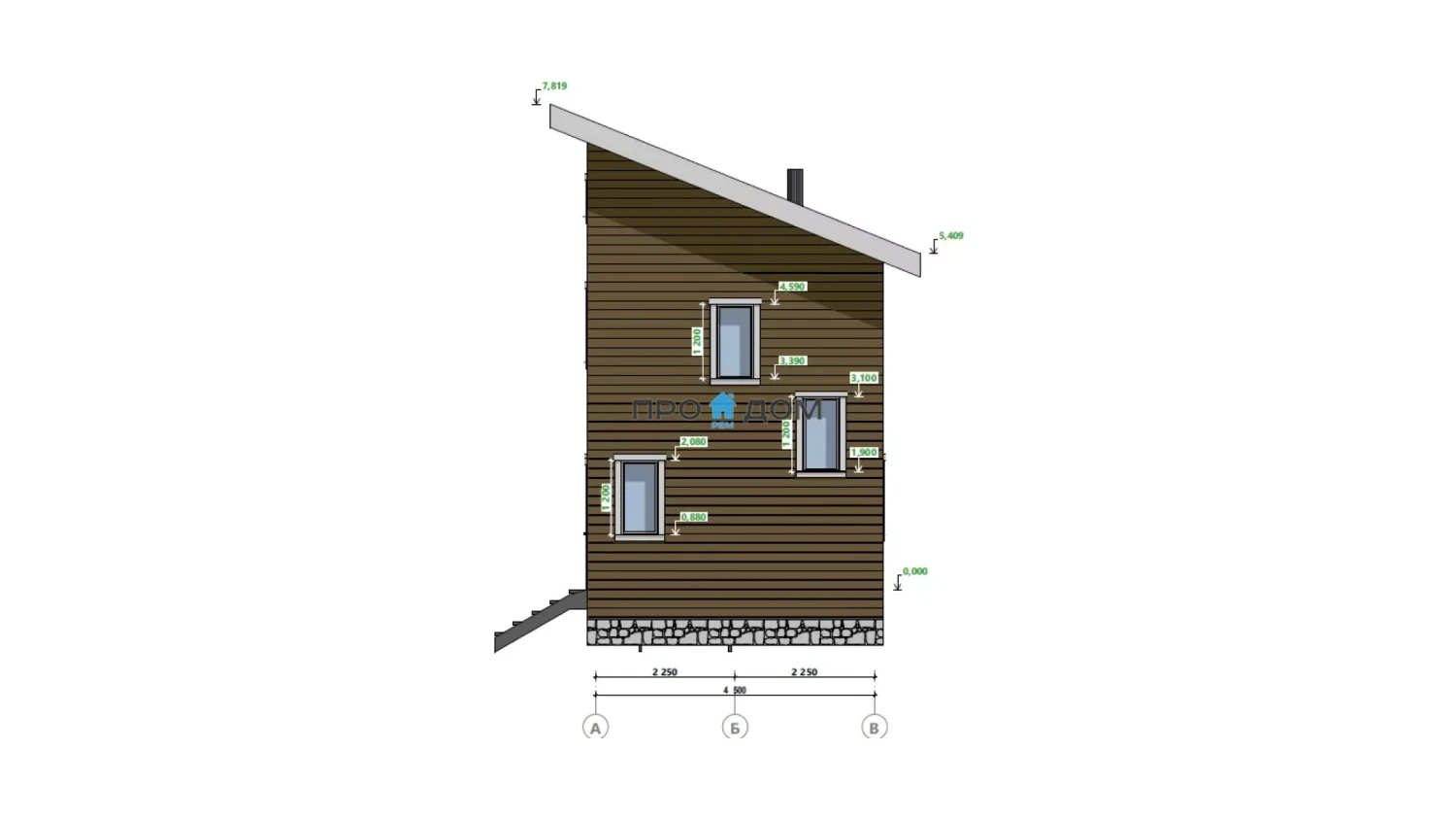 Сечение стоек наружных стен каркаса