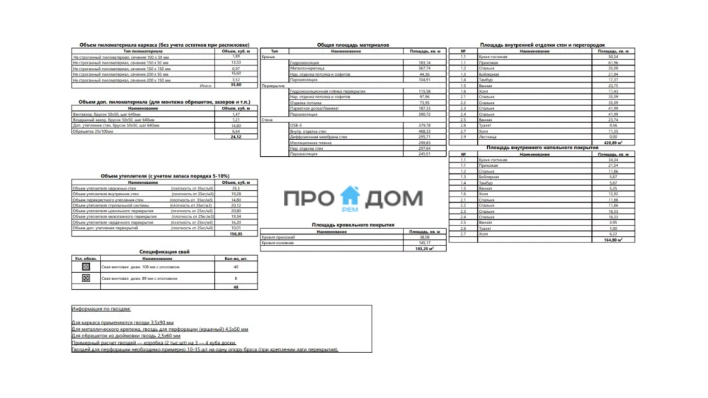 Объем пиломатериала для силового каркаса