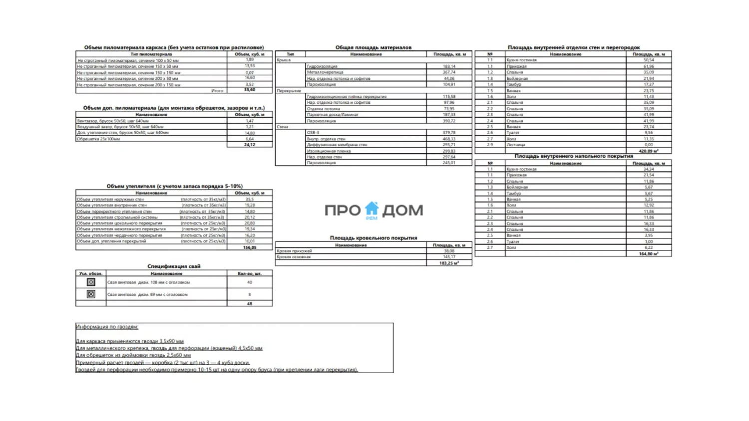 Внутренние перегородки каркас из доски с заполнением звукоизоляцией, обшивка черновая либо в один слой под последующую отделку.