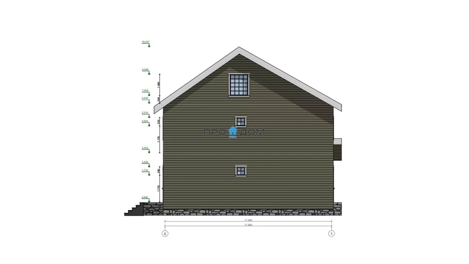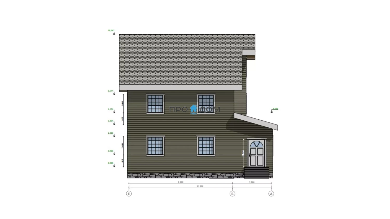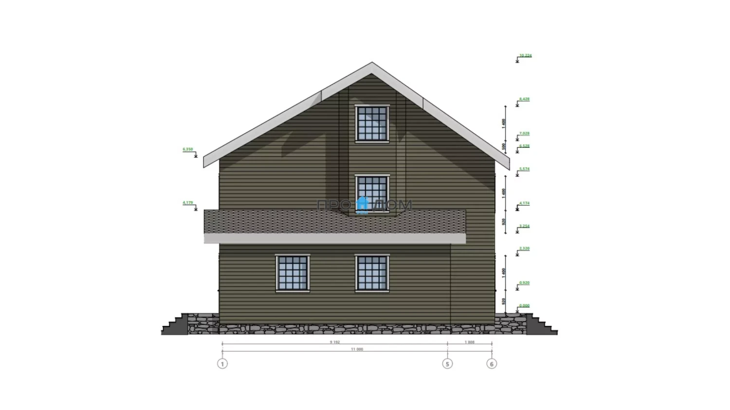 Каркасный двухэтажный дом ПД-197 – прекрасный объект для круглогодичного проживания. Снеговая/ветровая нагрузка уровня 2 этажа делает постройку надёжной в любую погоду. Площадь дома составляет 206 м², что позволит разместить всю необходимую мебель и предметы интерьера. Размеры дома 11.00 x 11.00 м экономят место на участке, чтобы вы могли освоить свободное пространство по своему вкусу.