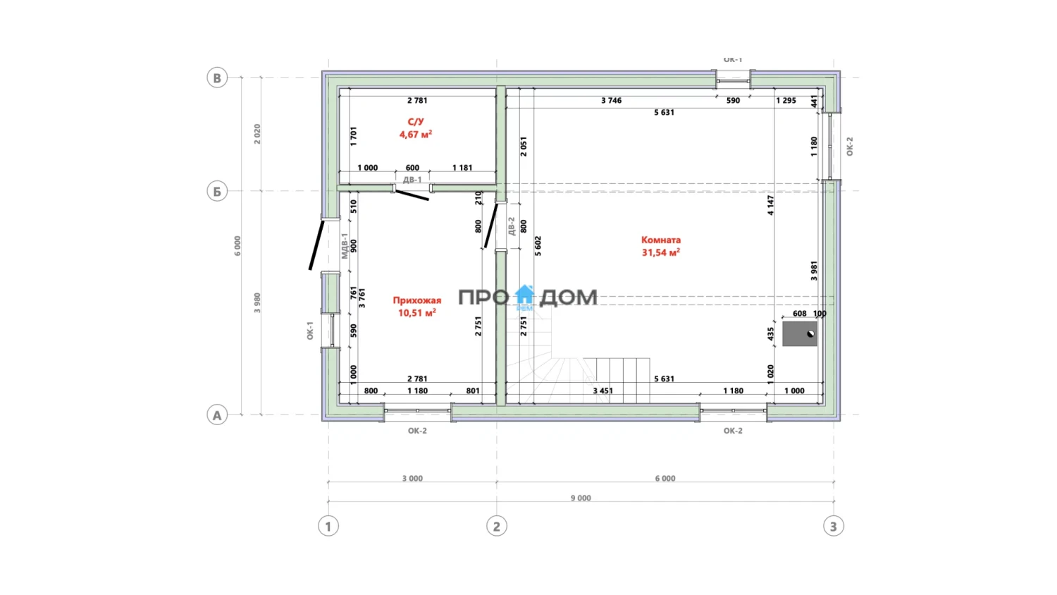 Сечение стоек наружных стен каркаса