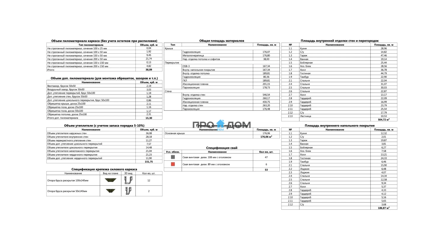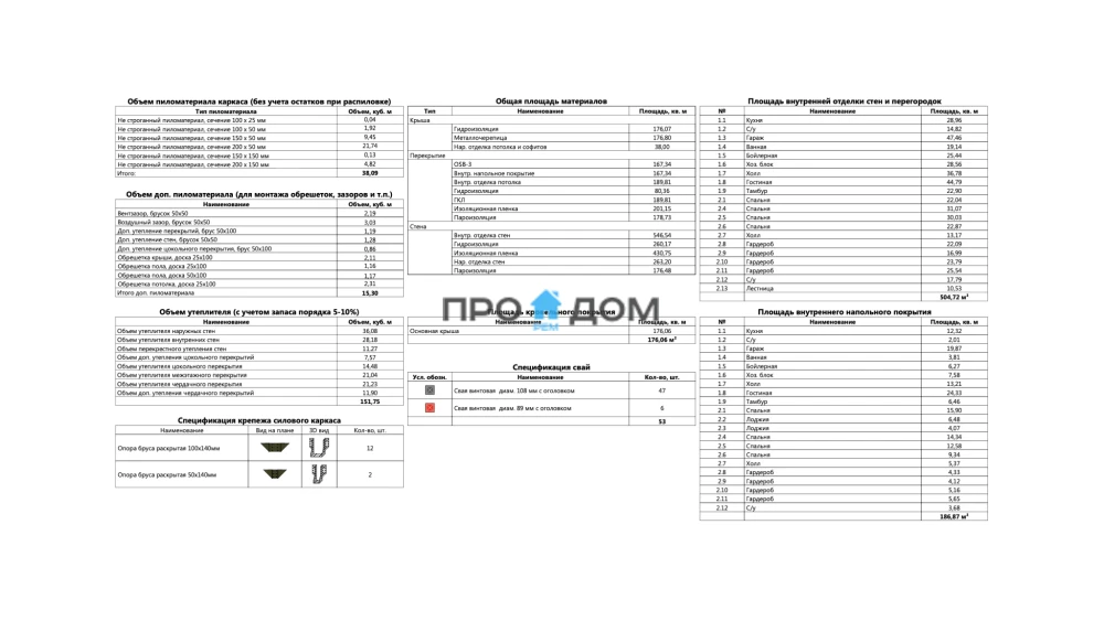 Объем пиломатериала для силового каркаса
