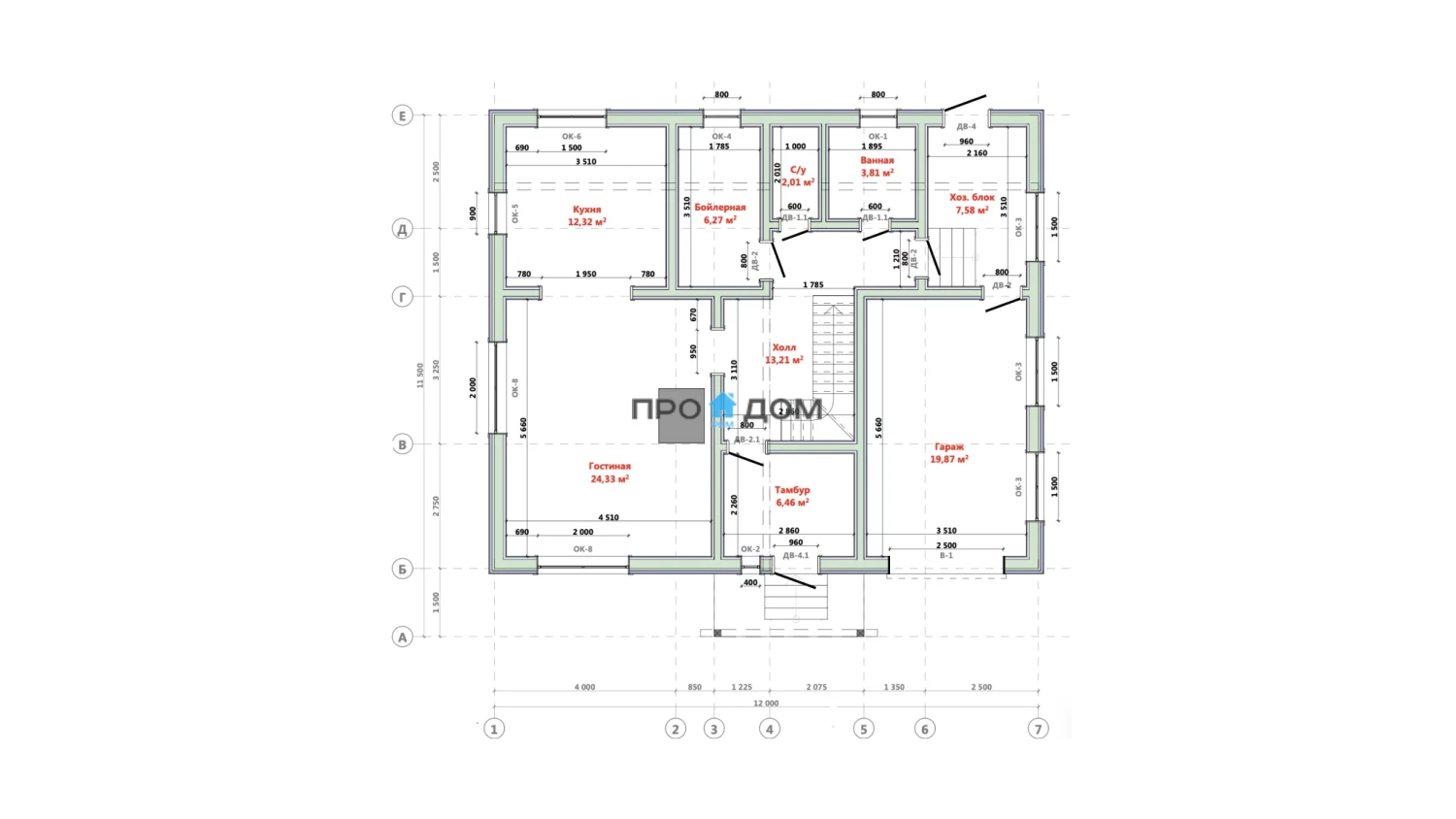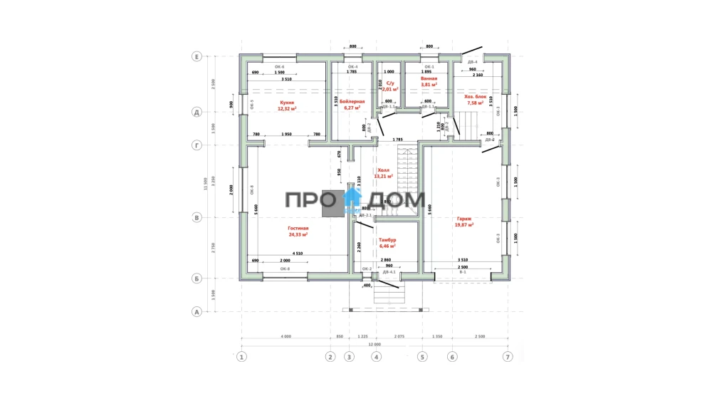 Сечение стоек наружных стен каркаса