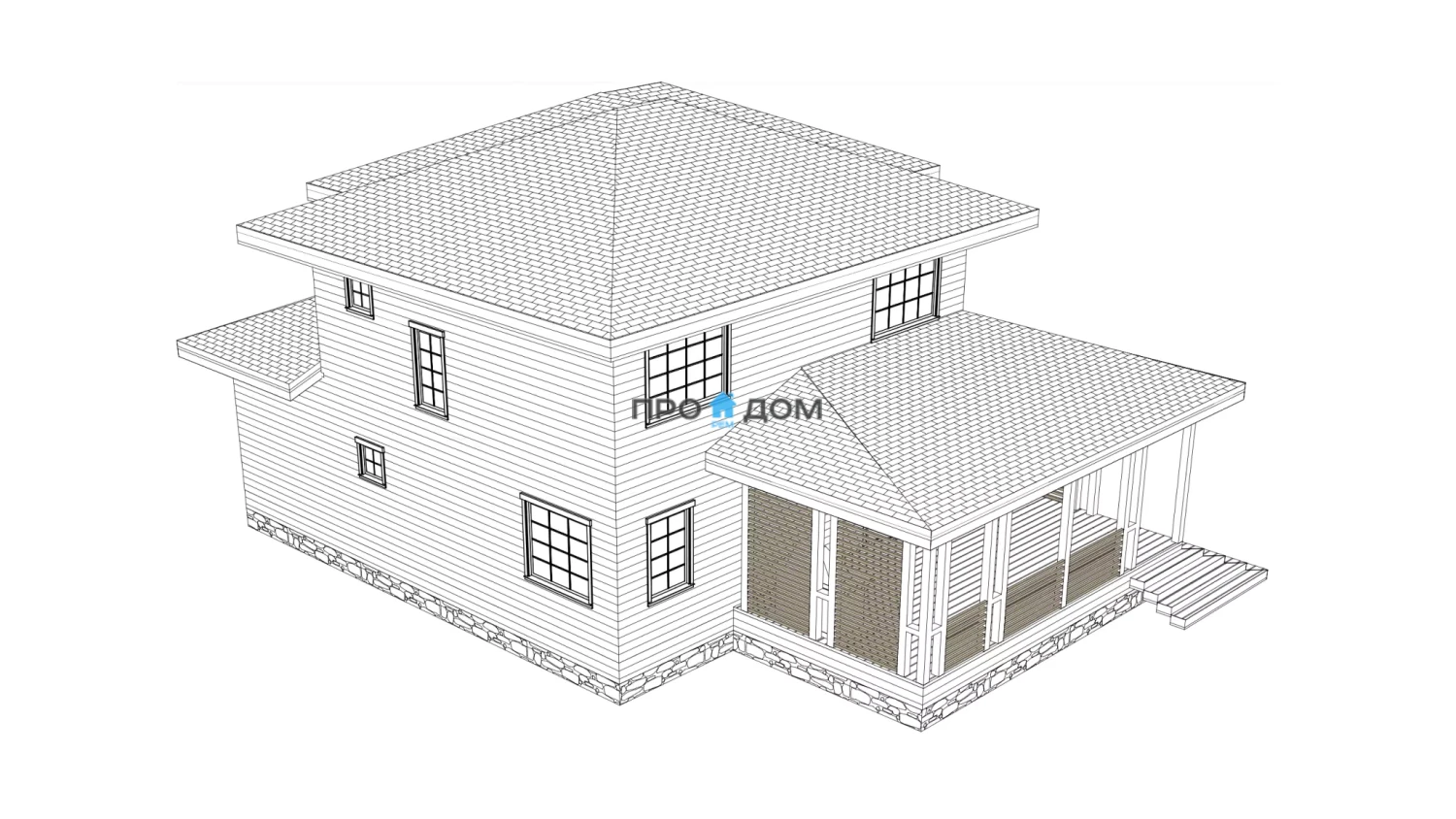 Каркас наружных стен сборка несущего контура с расчетным сечением стоек, усилением углов и проемов, наружной ветрозащитой и внутренней пароизоляцией без финишной обшивки.