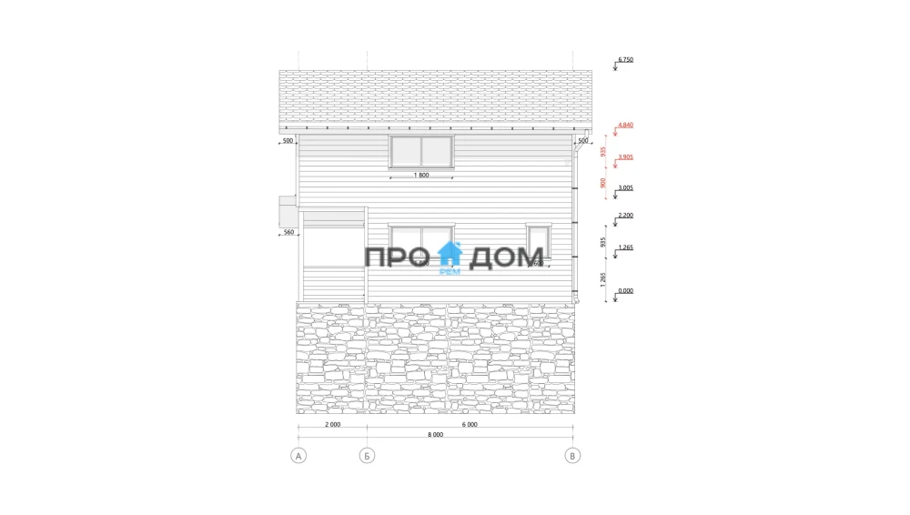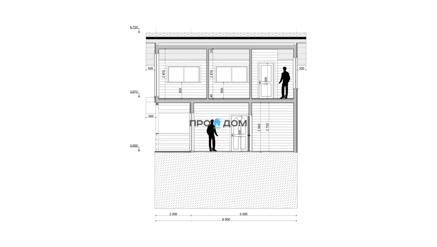 Сечение стоек наружных стен каркаса