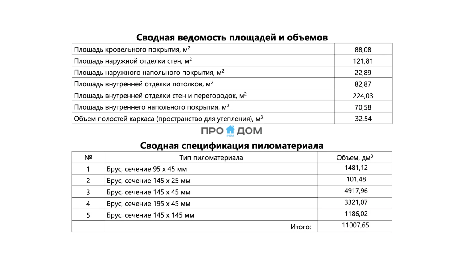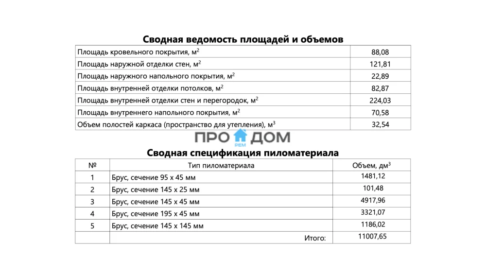 Объем пиломатериала для силового каркаса