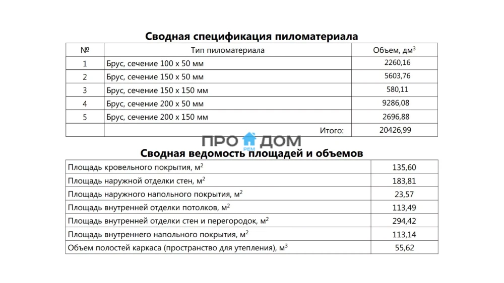 | Внутренние перегородки | каркас из доски с заполнением звукоизоляцией, обшивка черновая либо в один слой под последующую отделку. |