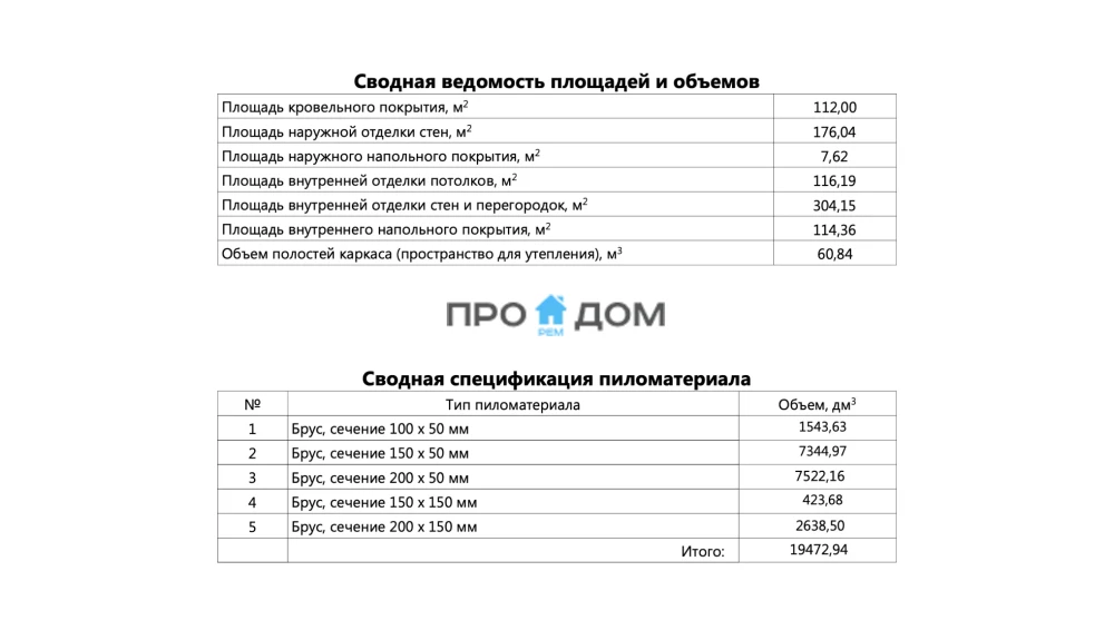 Объем пиломатериала для силового каркаса