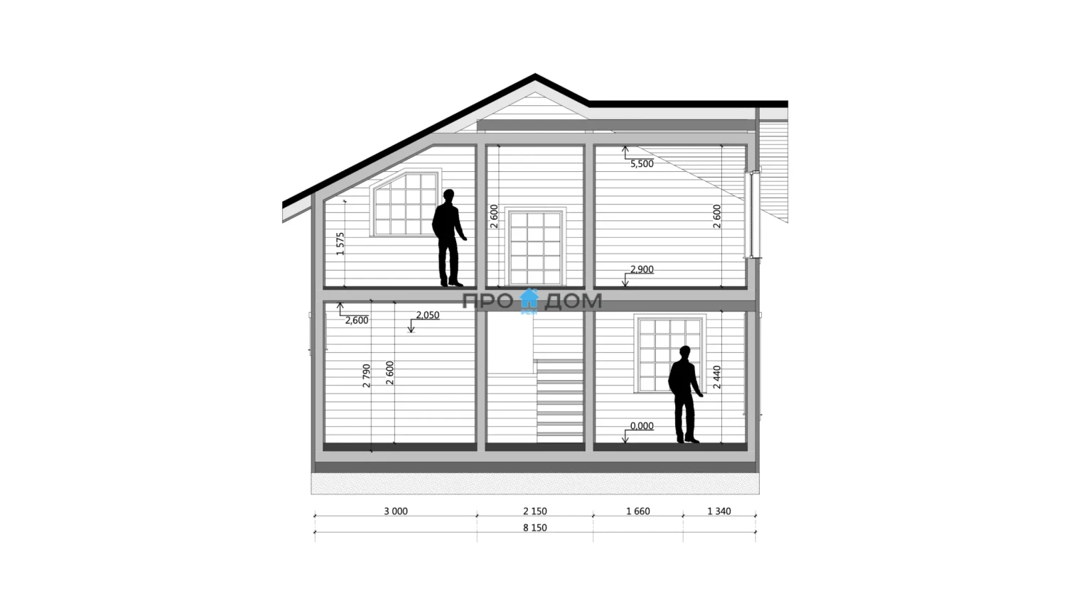 Сечение стоек наружных стен каркаса