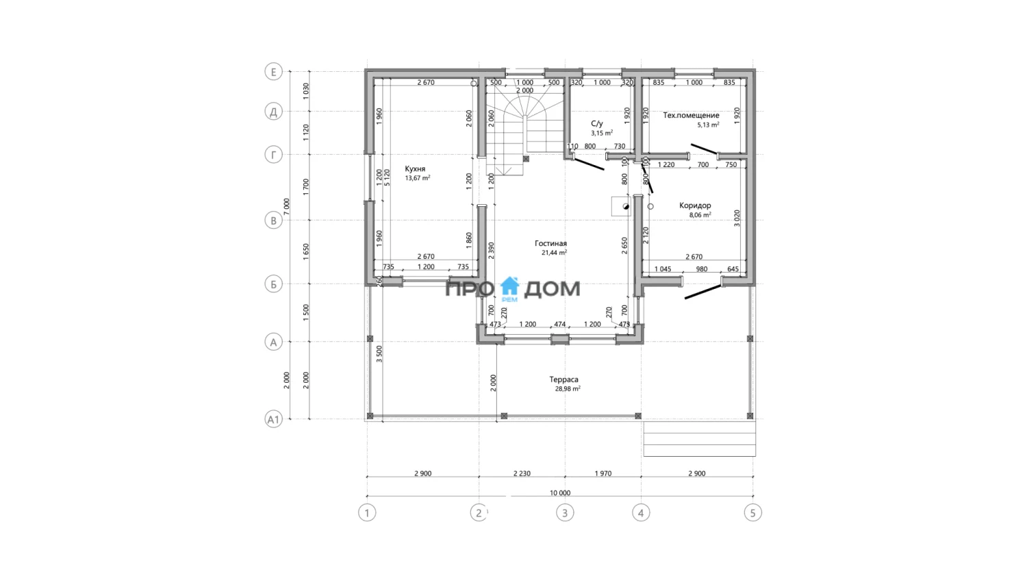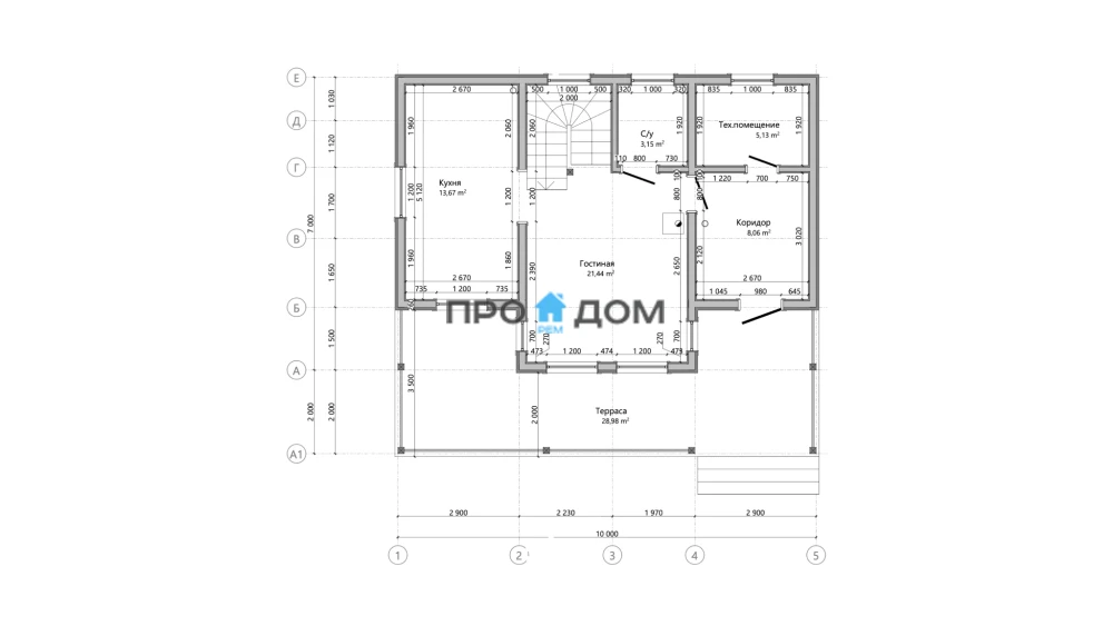Сечение стоек наружных стен каркаса