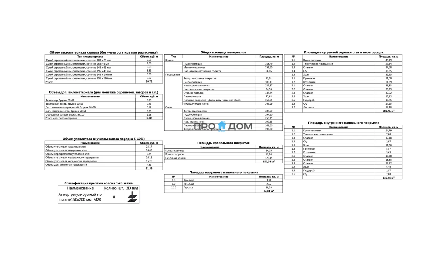 Объем пиломатериала для силового каркаса