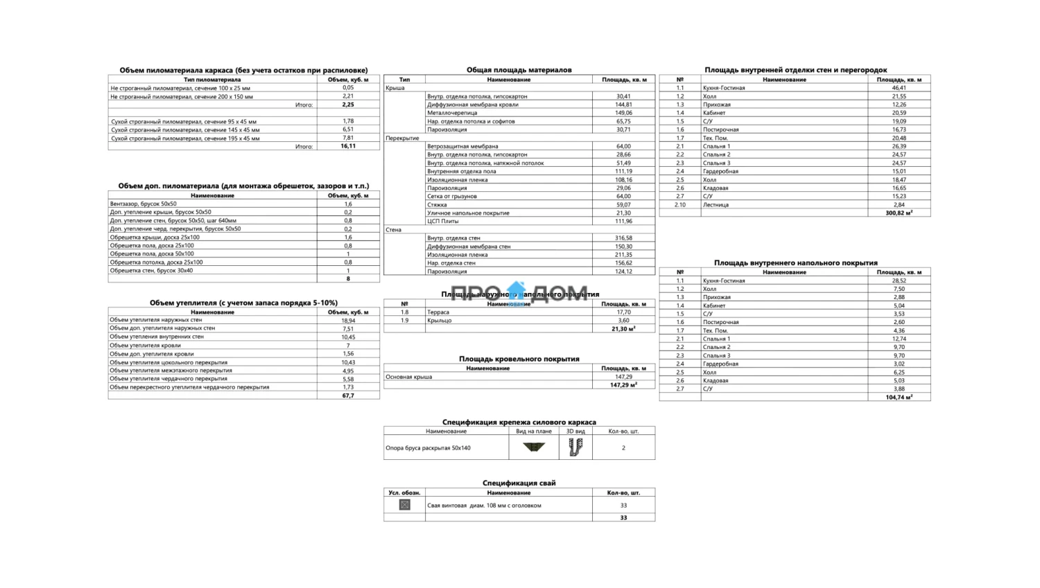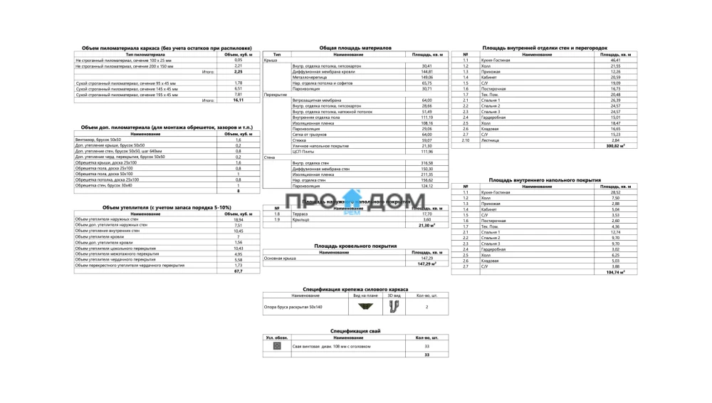 Объем пиломатериала для силового каркаса