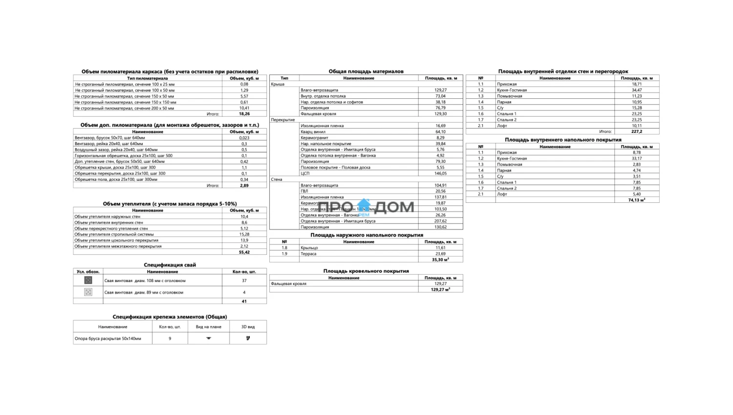 | Кровля | стропильная система с гидроизоляционной мембраной, контробрешеткой и обрешеткой, с монтажом кровельного покрытия по выбранному типу. |