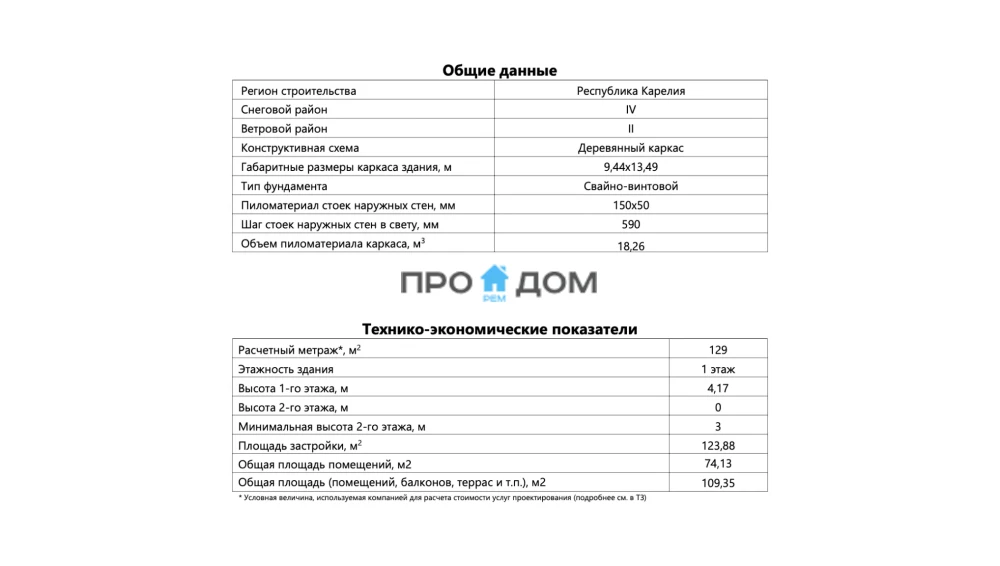 Каркасный одноэтажный дом ПО-464 – прекрасный объект для круглогодичного проживания. Снеговая/ветровая нагрузка уровня 1 этаж делает постройку надёжной в любую погоду. Площадь дома составляет 129 м², что позволит разместить всю необходимую мебель и предметы интерьера. Размеры дома 13.49 x 9.44 м экономят место на участке, чтобы вы могли освоить свободное пространство по своему вкусу.