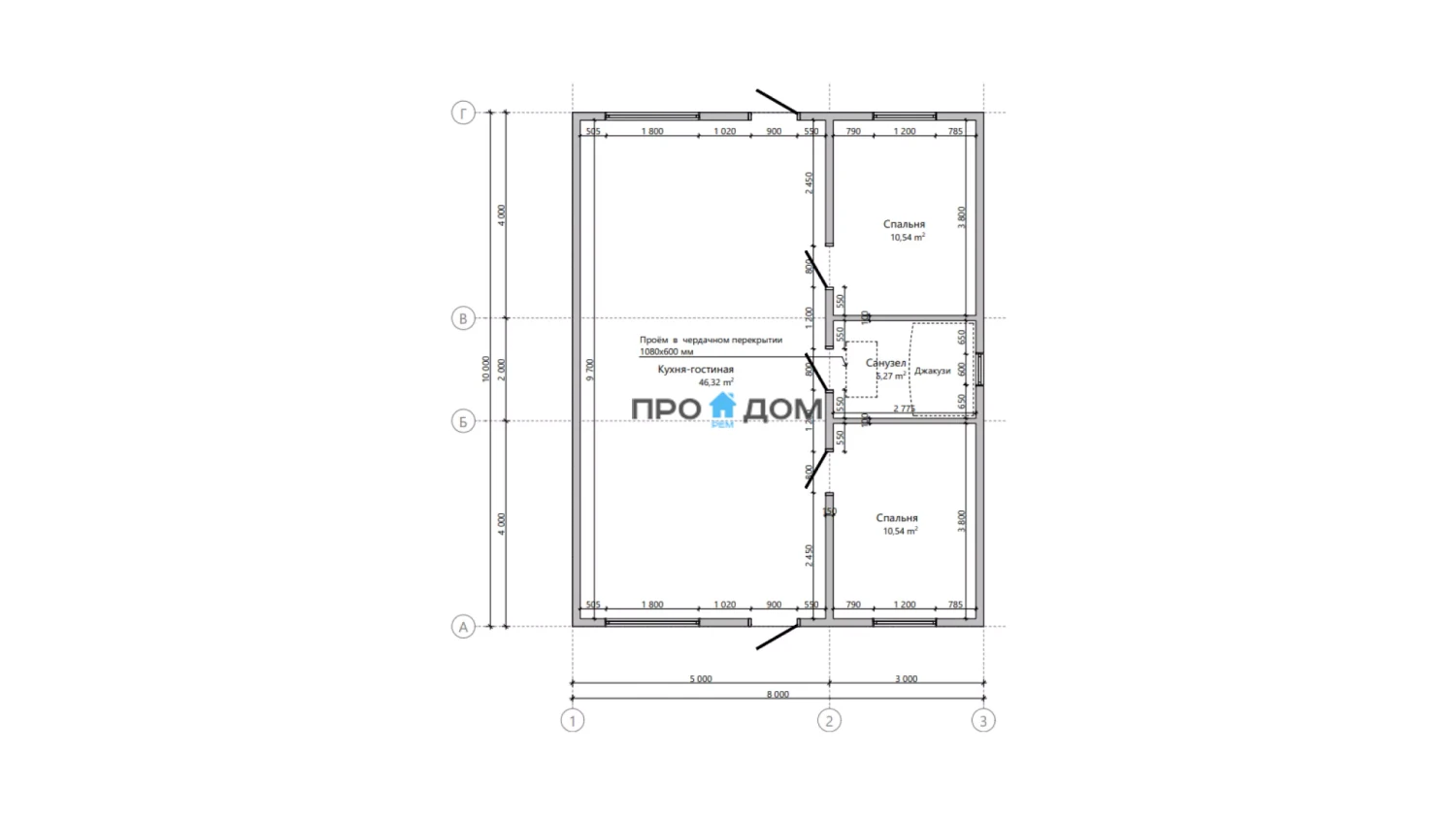 Каркасный одноэтажный дом ПО-926 – прекрасный объект для круглогодичного проживания. Снеговая/ветровая нагрузка уровня 1 этаж делает постройку надёжной в любую погоду. Площадь дома составляет 80 м², что позволит разместить всю необходимую мебель и предметы интерьера. Размеры дома 10 x 8 м экономят место на участке, чтобы вы могли освоить свободное пространство по своему вкусу.