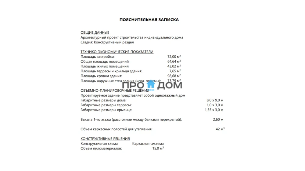 Каркасный одноэтажный дом ПО-173 – прекрасный объект для круглогодичного проживания. Снеговая/ветровая нагрузка уровня 1 этаж делает постройку надёжной в любую погоду. Площадь дома составляет 72 м², что позволит разместить всю необходимую мебель и предметы интерьера. Размеры дома 9 x 8 м экономят место на участке, чтобы вы могли освоить свободное пространство по своему вкусу.