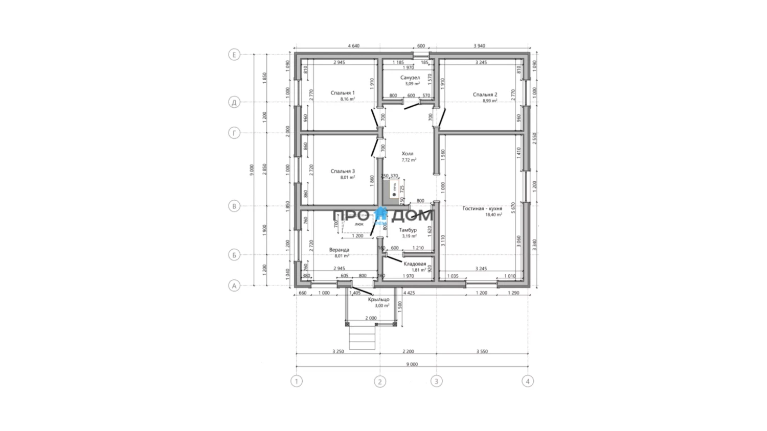 Каркасный одноэтажный дом ПО-331 – прекрасный объект для круглогодичного проживания. Снеговая/ветровая нагрузка уровня 1 этаж делает постройку надёжной в любую погоду. Площадь дома составляет 84 м², что позволит разместить всю необходимую мебель и предметы интерьера. Размеры дома 9 x 9 м экономят место на участке, чтобы вы могли освоить свободное пространство по своему вкусу.