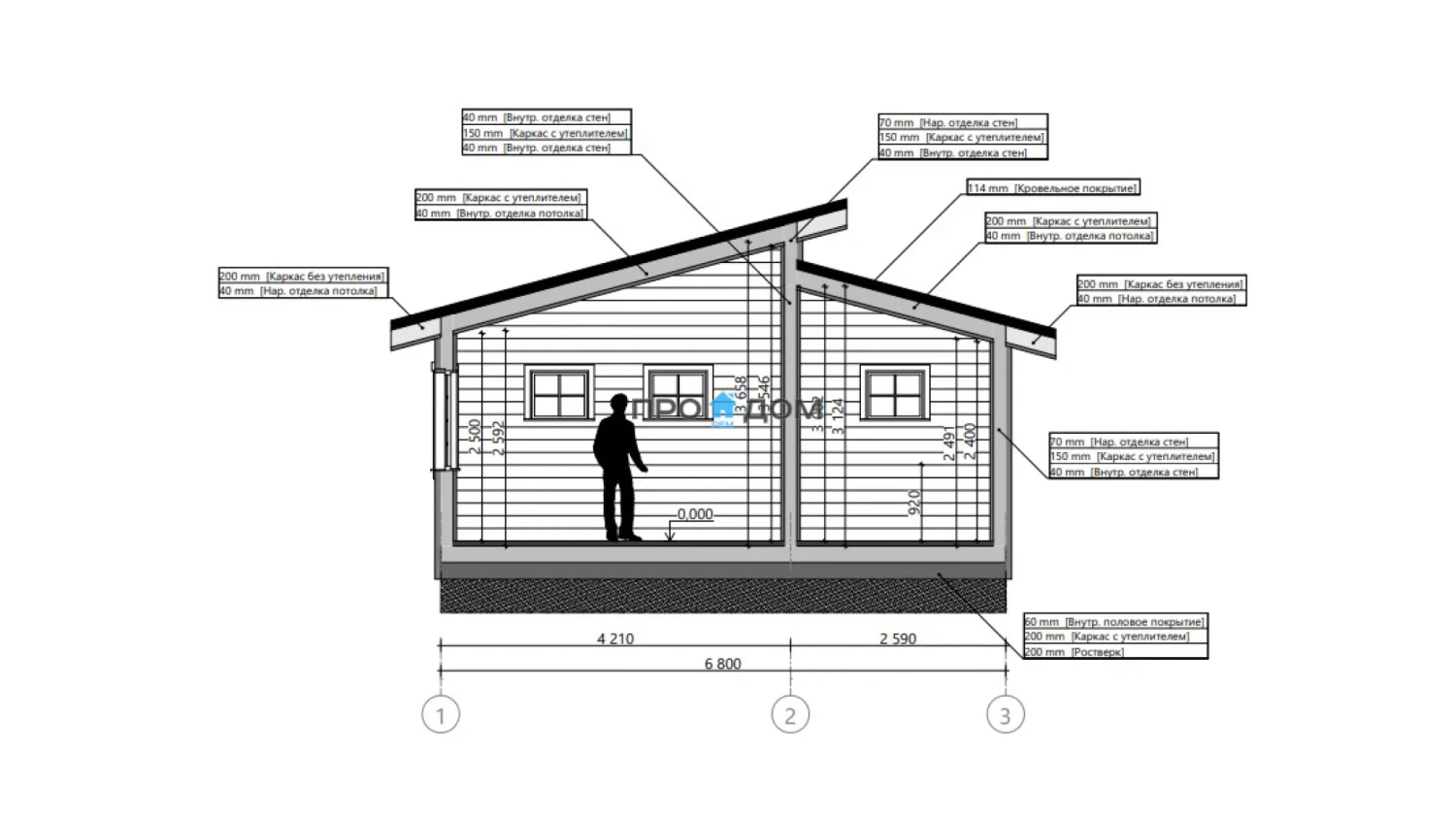 | Наружные стены | каркас с утеплителем проектной толщины, ветро- и пароизоляционные пленки без чистовой облицовки. |