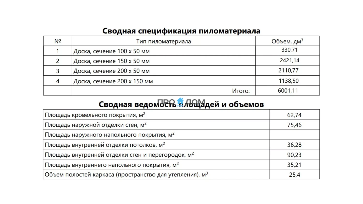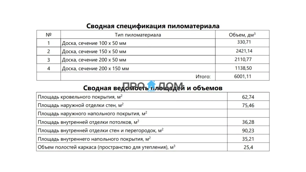 Объем пиломатериала для силового каркаса