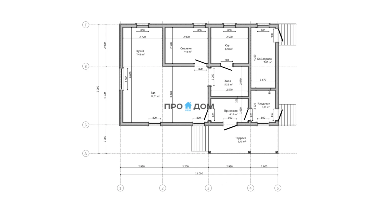 | Оконные и дверные проемы | формирование проемов с установкой черновых коробок/доборов (при необходимости) под последующий монтаж окон и дверей. |