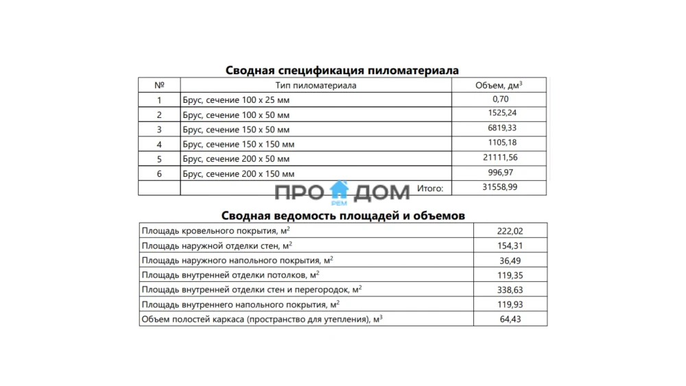 Объем пиломатериала для силового каркаса