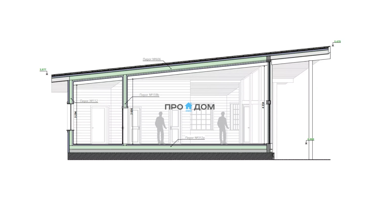 Сечение стоек наружных стен каркаса