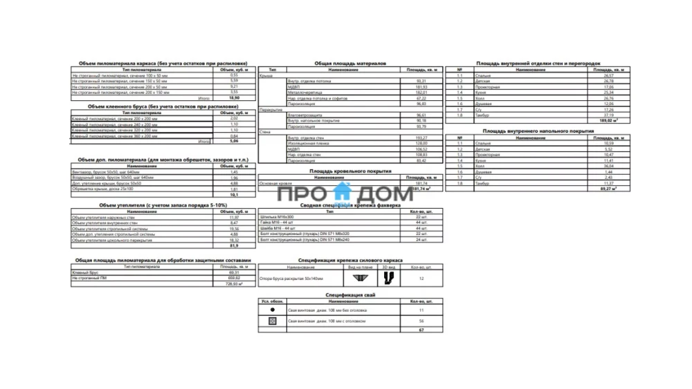 Объем пиломатериала для силового каркаса