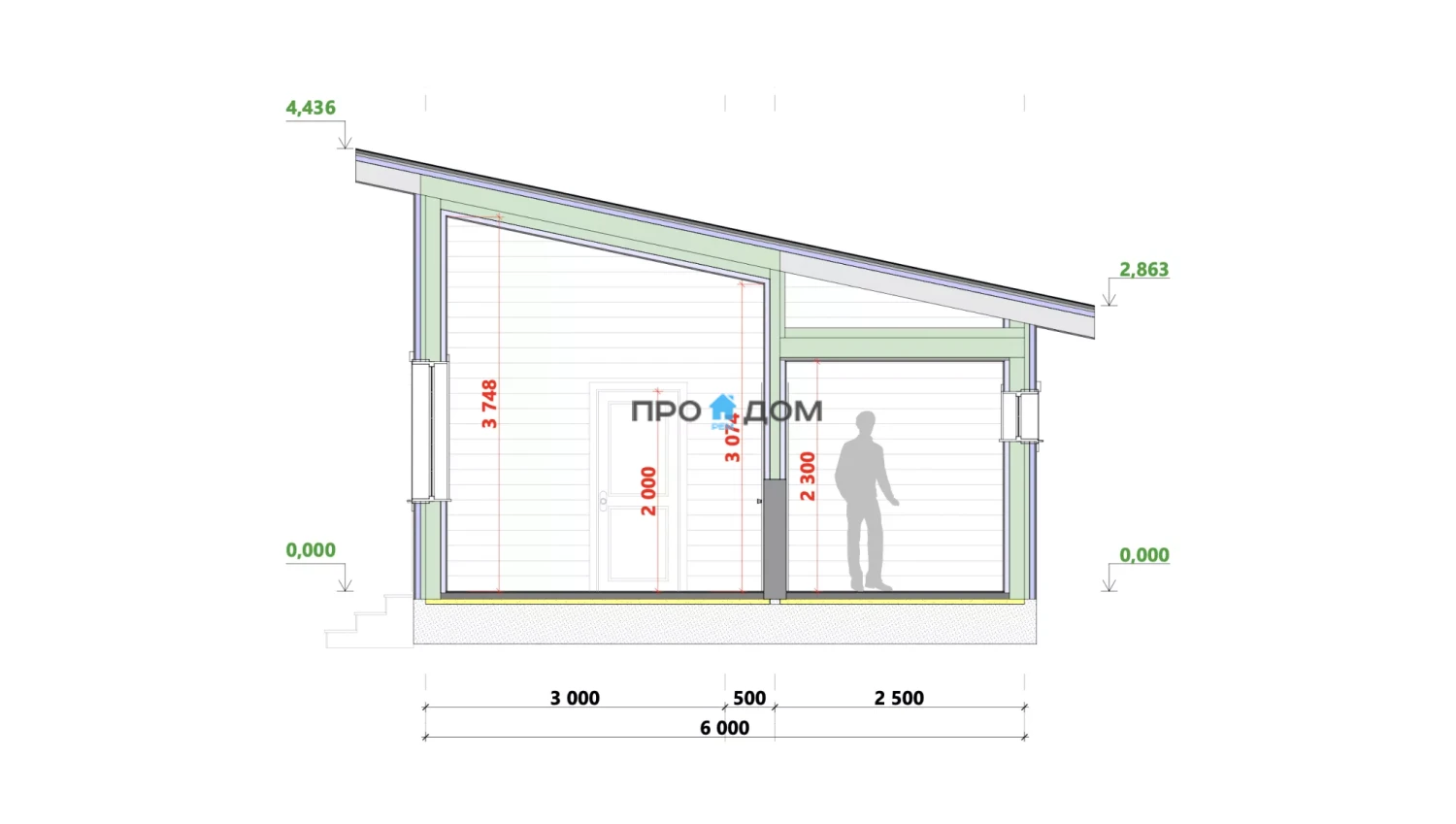 Наружные стены каркас с утеплителем, ветро- и пароизоляцией, с внешней обшивкой техническим материалом (ОСП/доска) под последующую отделку фасада.
