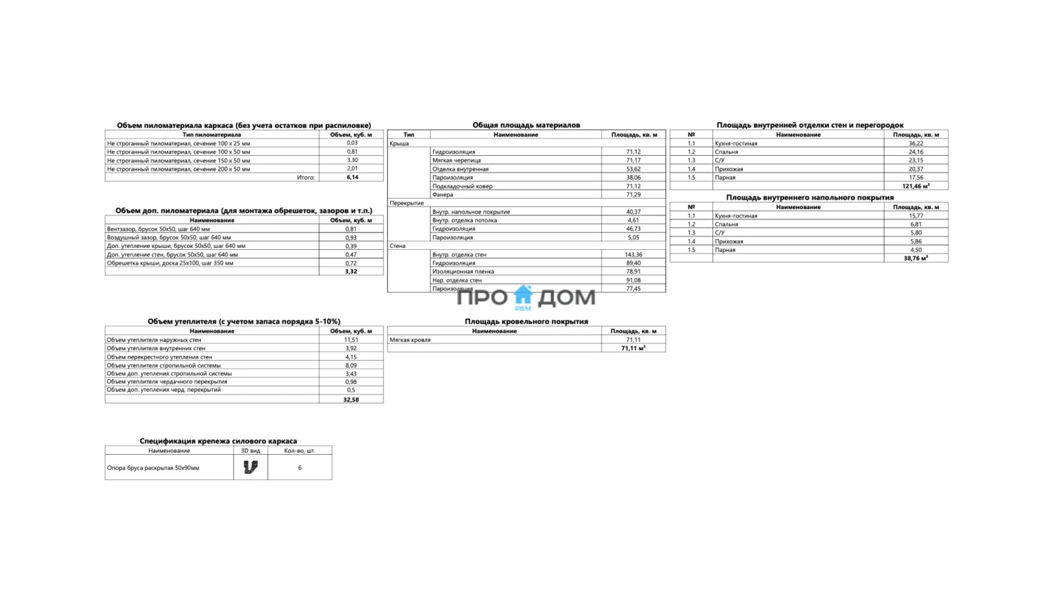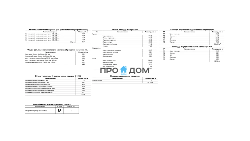 Объем пиломатериала для силового каркаса