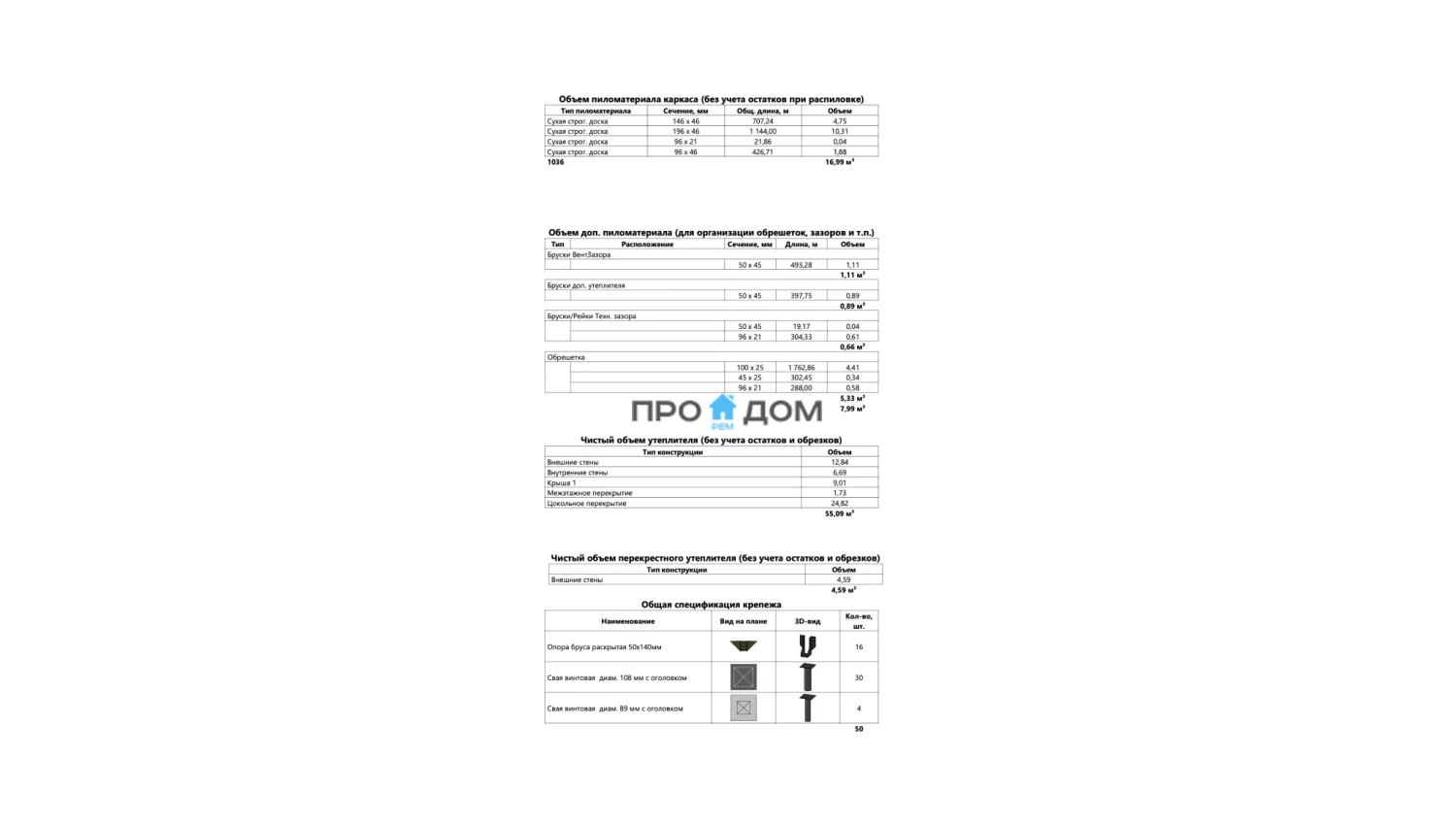 Объем пиломатериала для силового каркаса