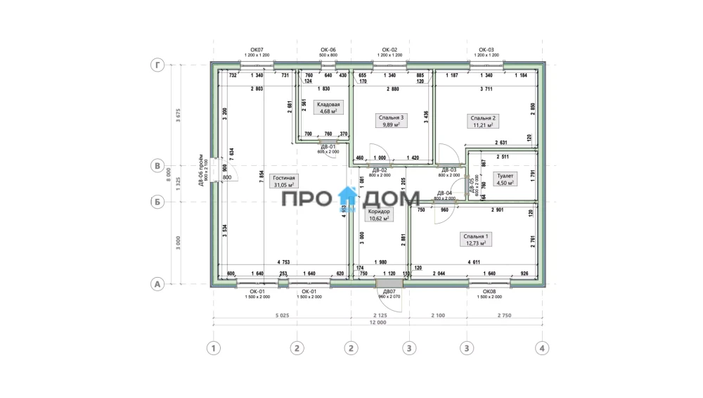 Каркасный одноэтажный дом ПО-461 – прекрасный объект для круглогодичного проживания. Снеговая/ветровая нагрузка уровня 1 этаж делает постройку надёжной в любую погоду. Площадь дома составляет 110 м², что позволит разместить всю необходимую мебель и предметы интерьера. Размеры дома 12.0 x 8.0 м экономят место на участке, чтобы вы могли освоить свободное пространство по своему вкусу.