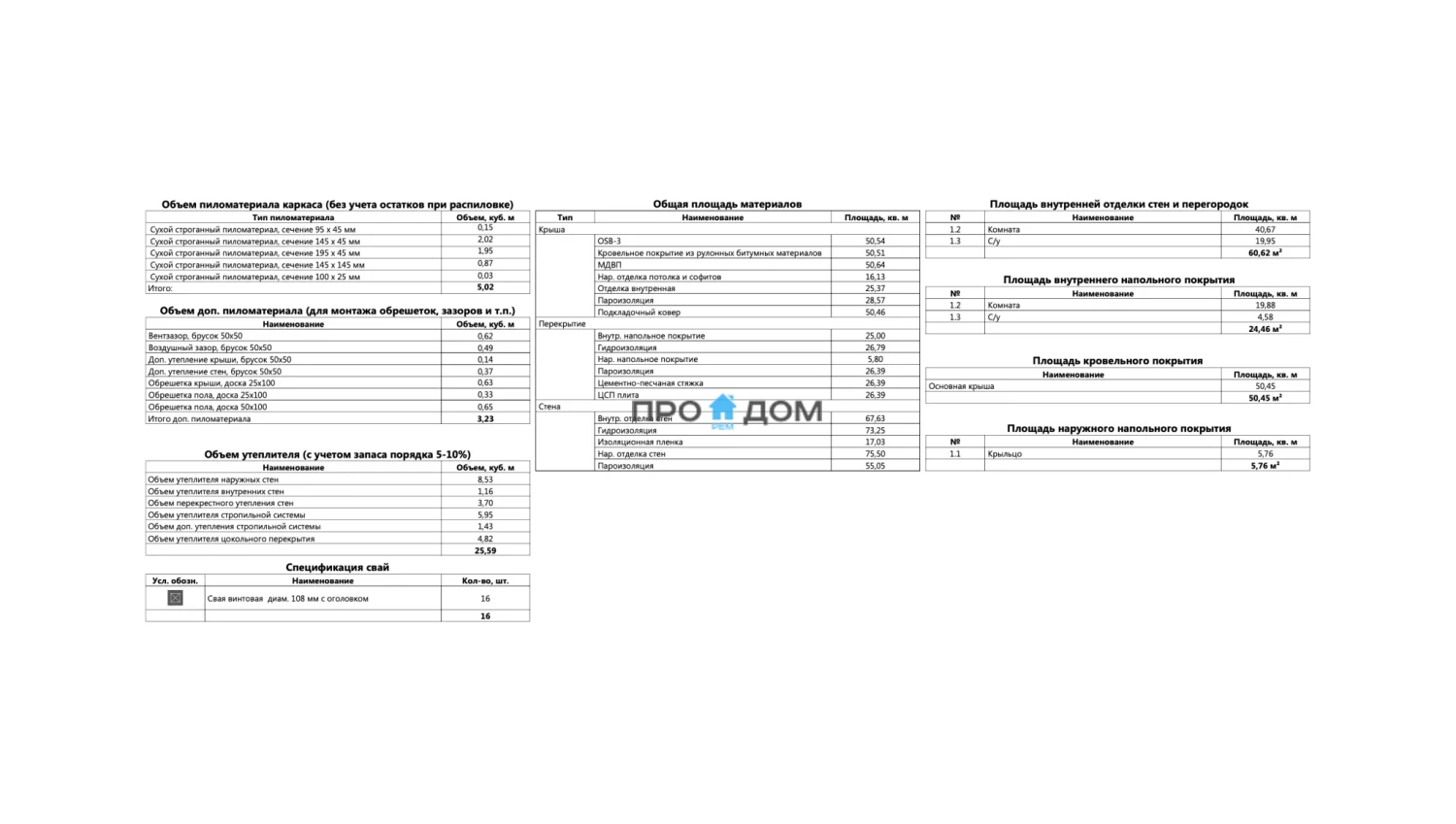 Объем пиломатериала для силового каркаса